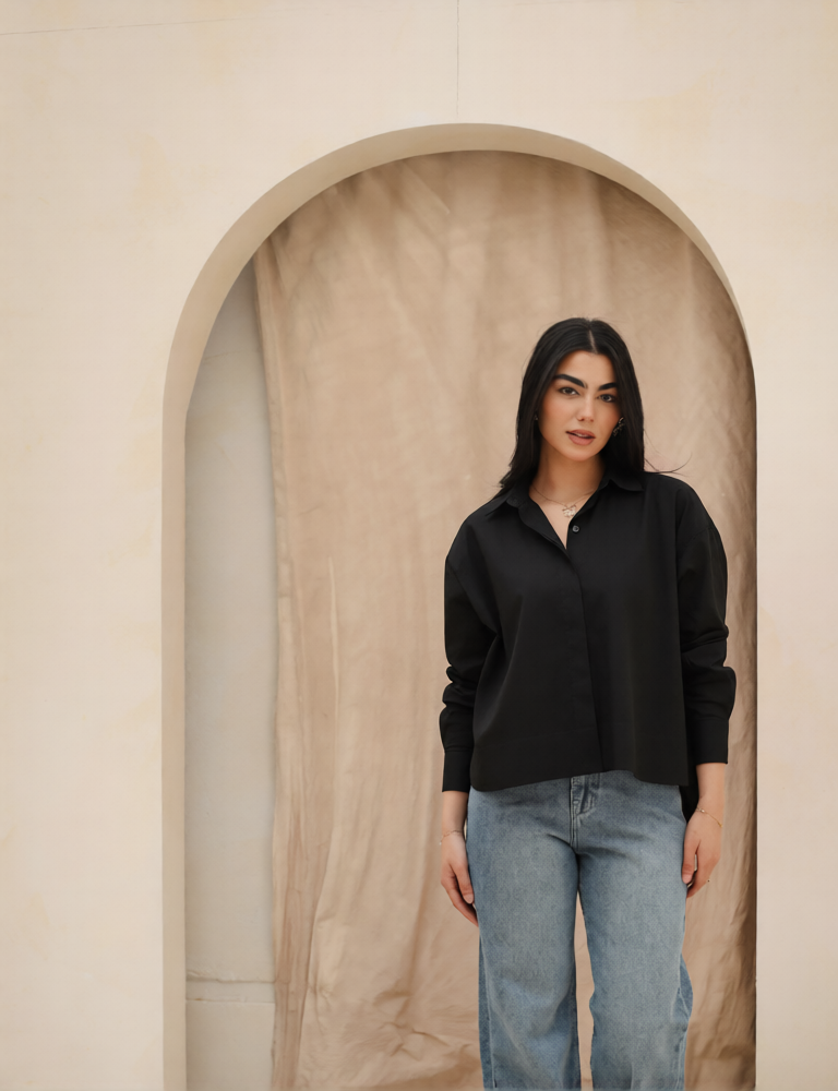 Cropped Poplin Shirt - Black