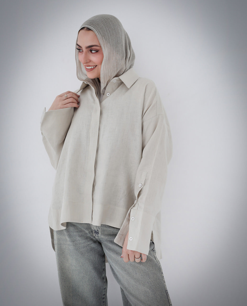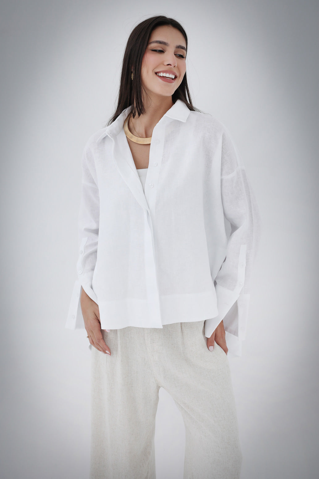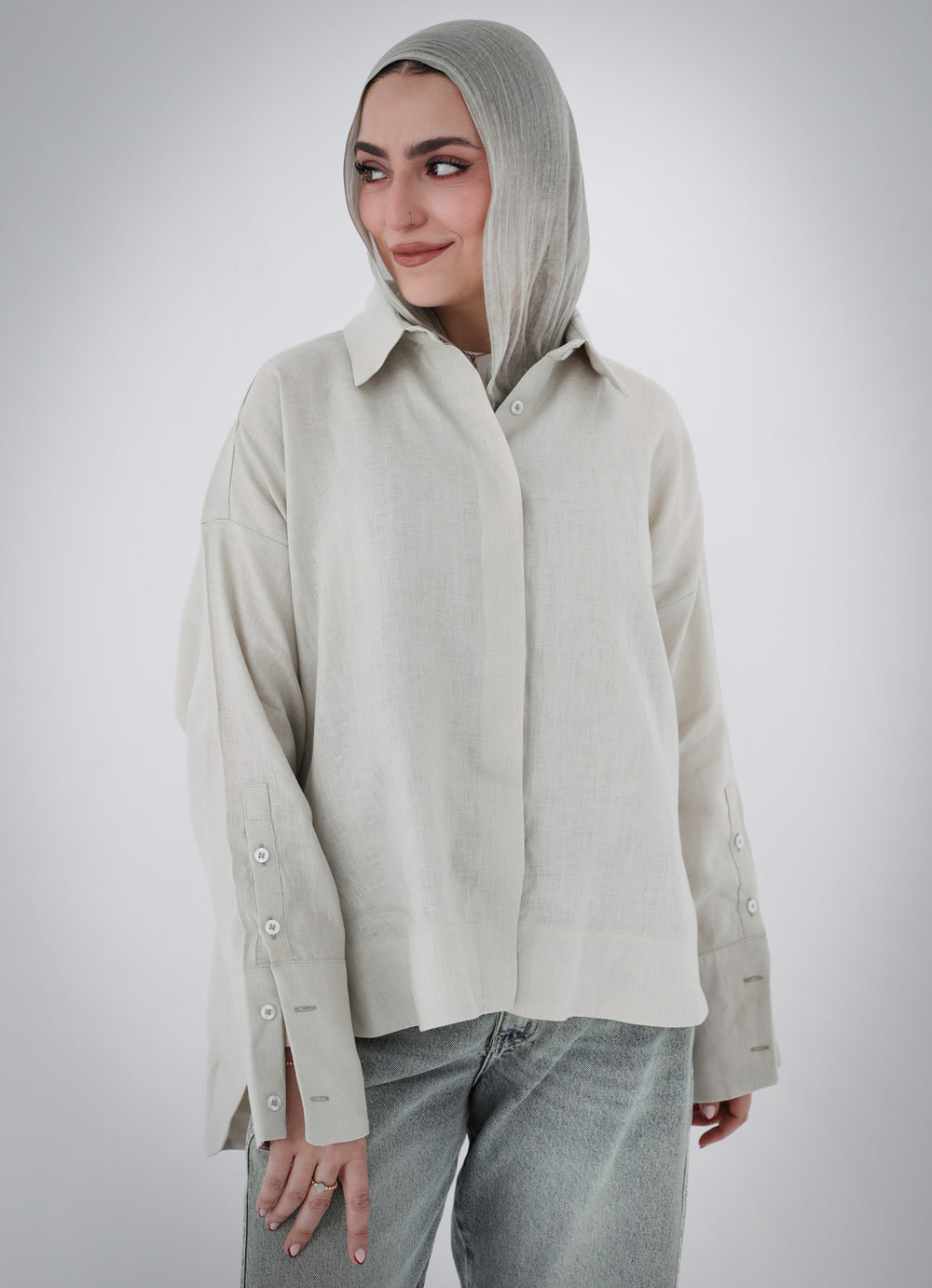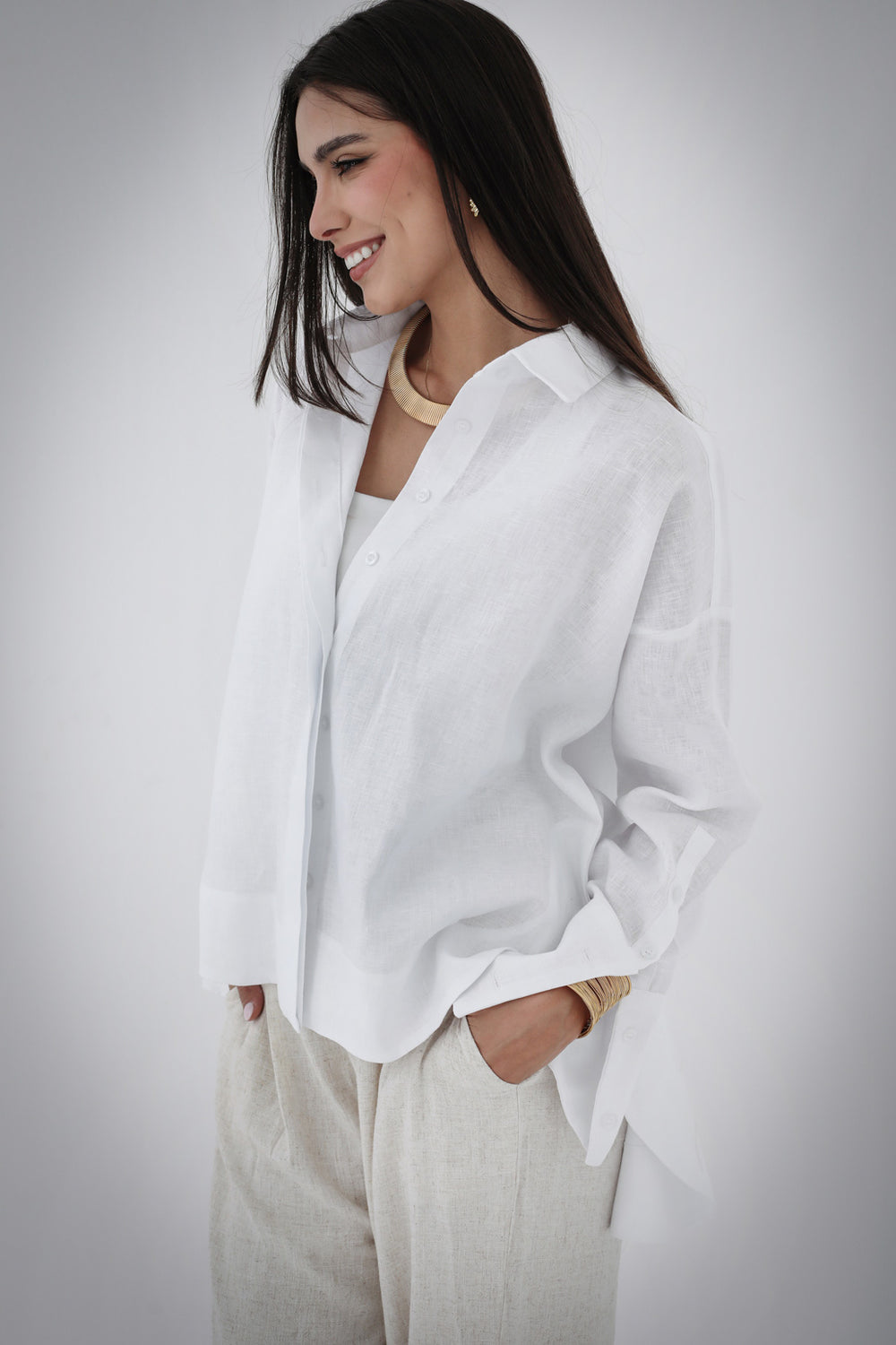 High-Low Linen Shirt- Beige