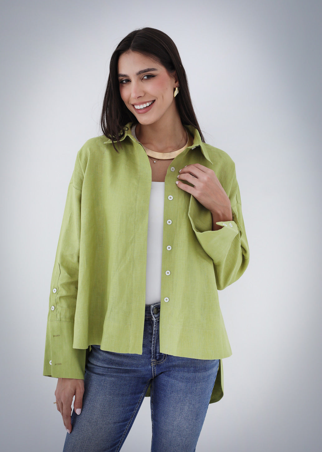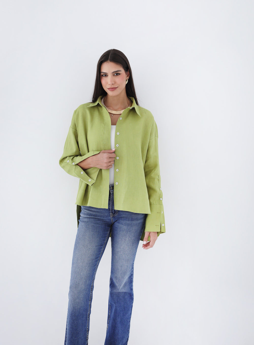 High-low Linen Shirt - Kiwi
