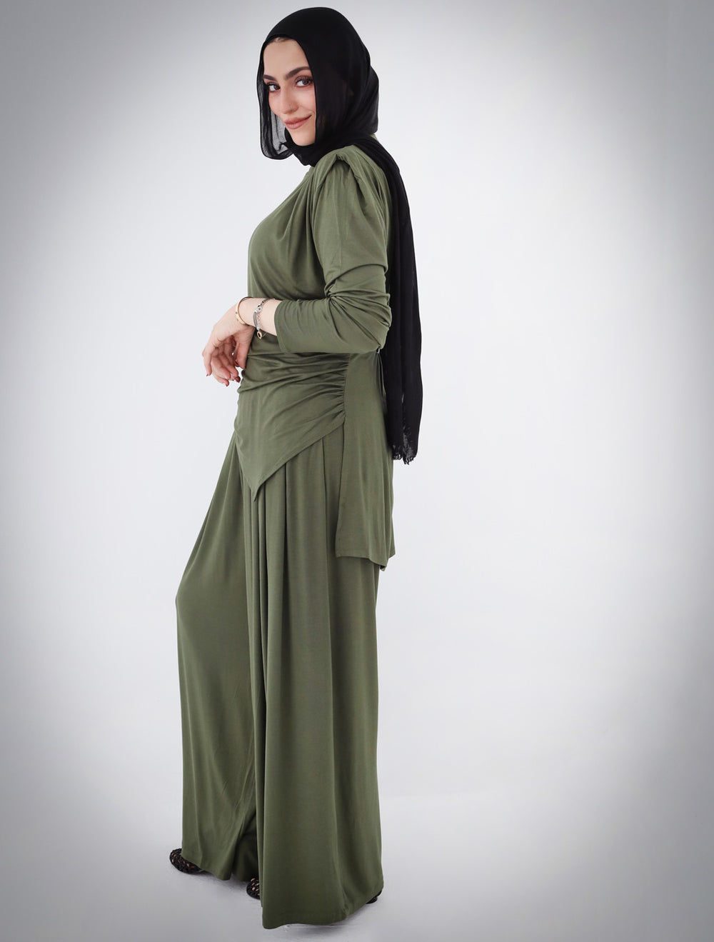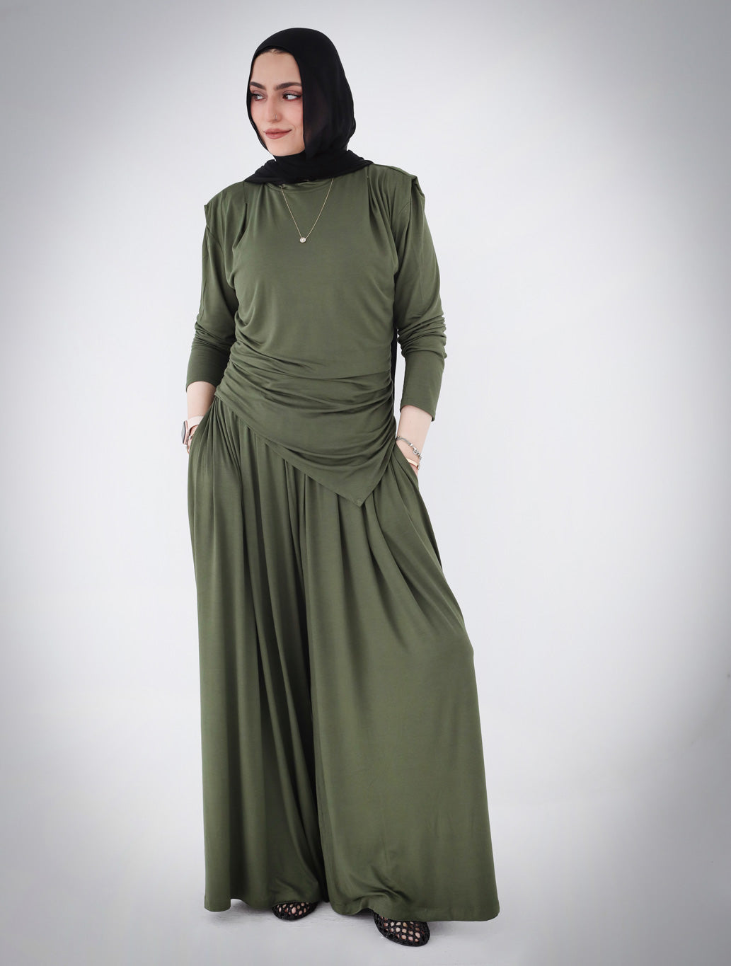 Draped Cotton Set - Olive