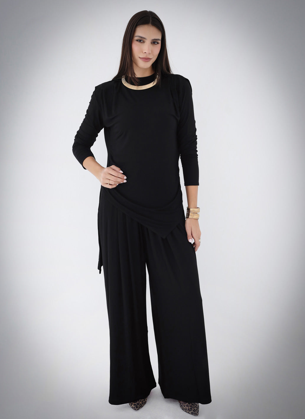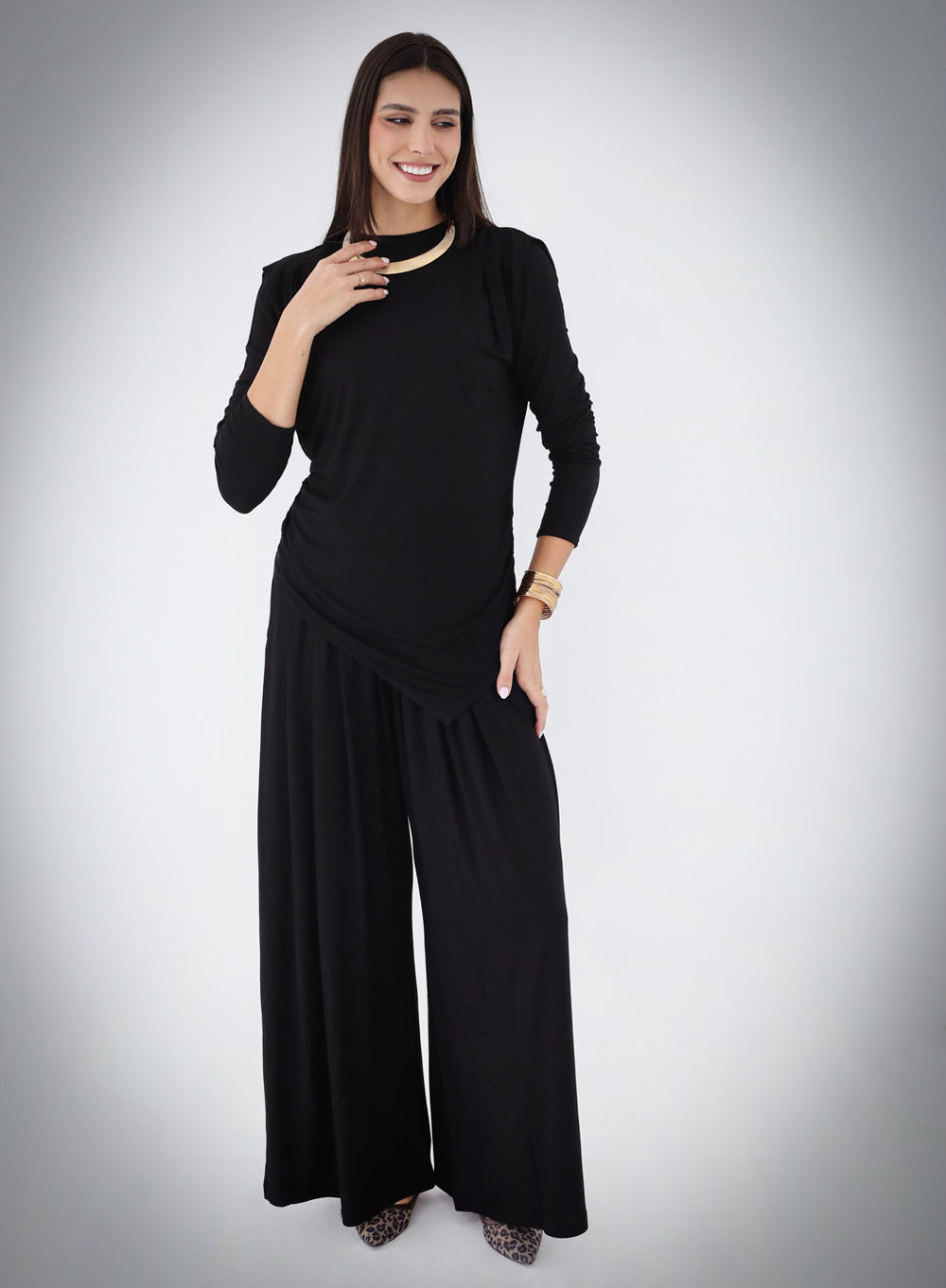 Draped Cotton Set - Black