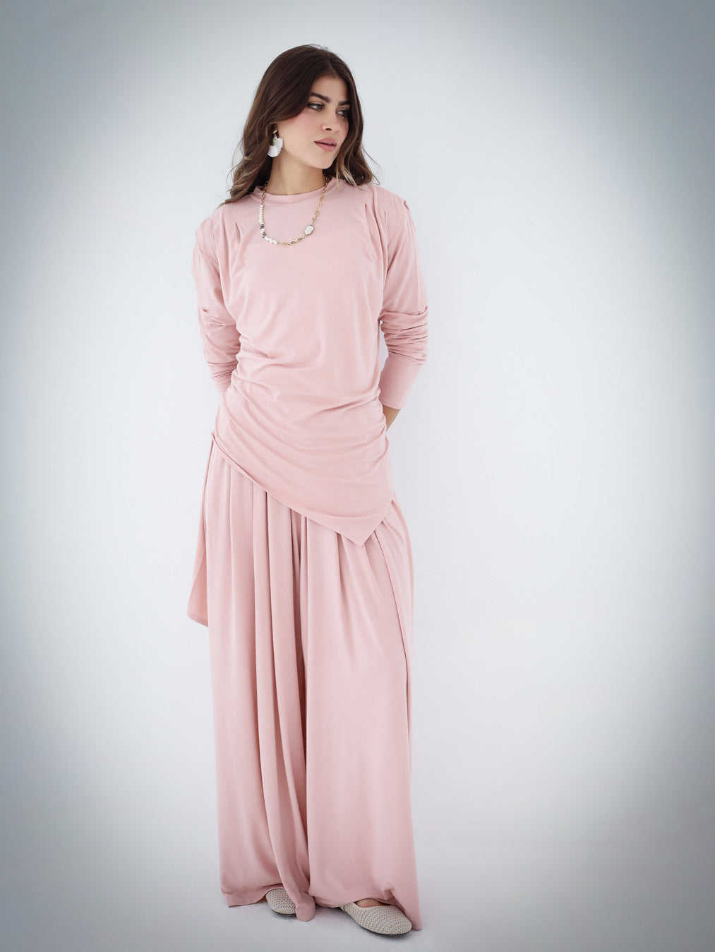 Draped Cotton Set - Baby Pink