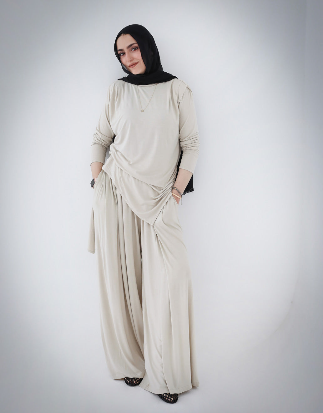 Draped Cotton Set - Beige