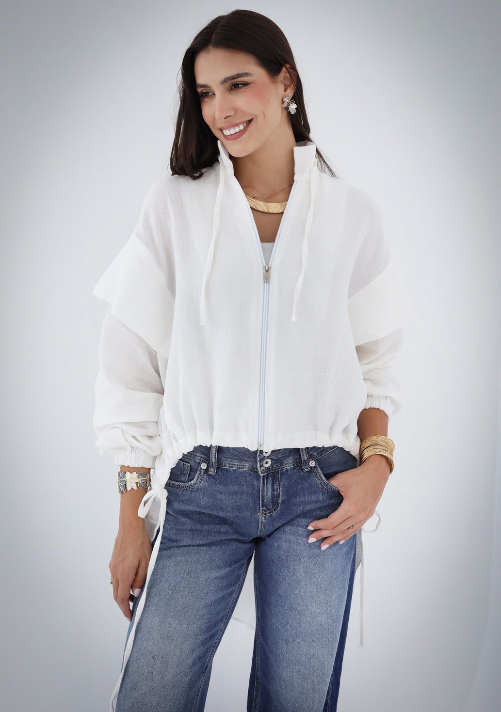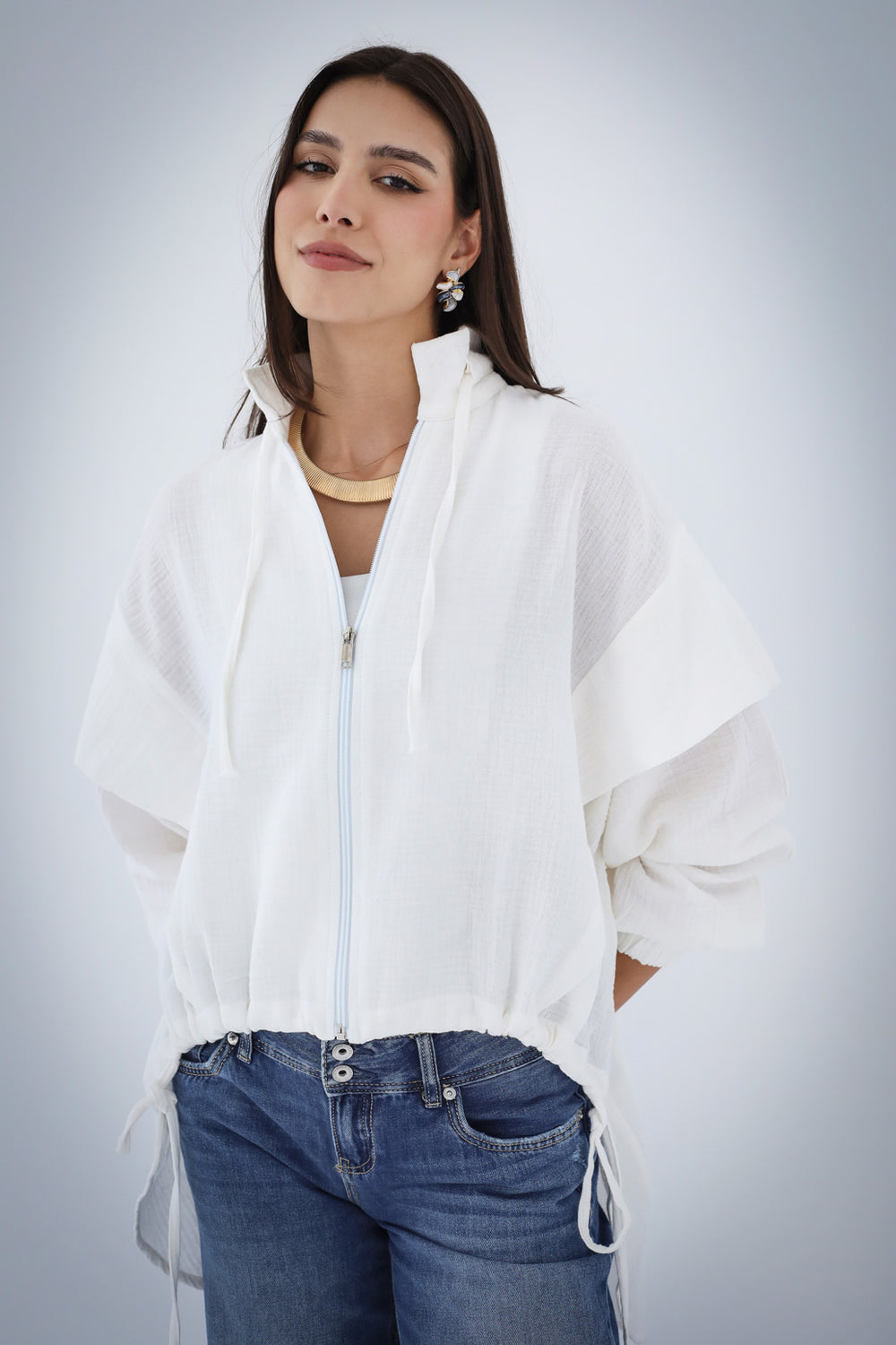 High-low Zipper Shirt - White