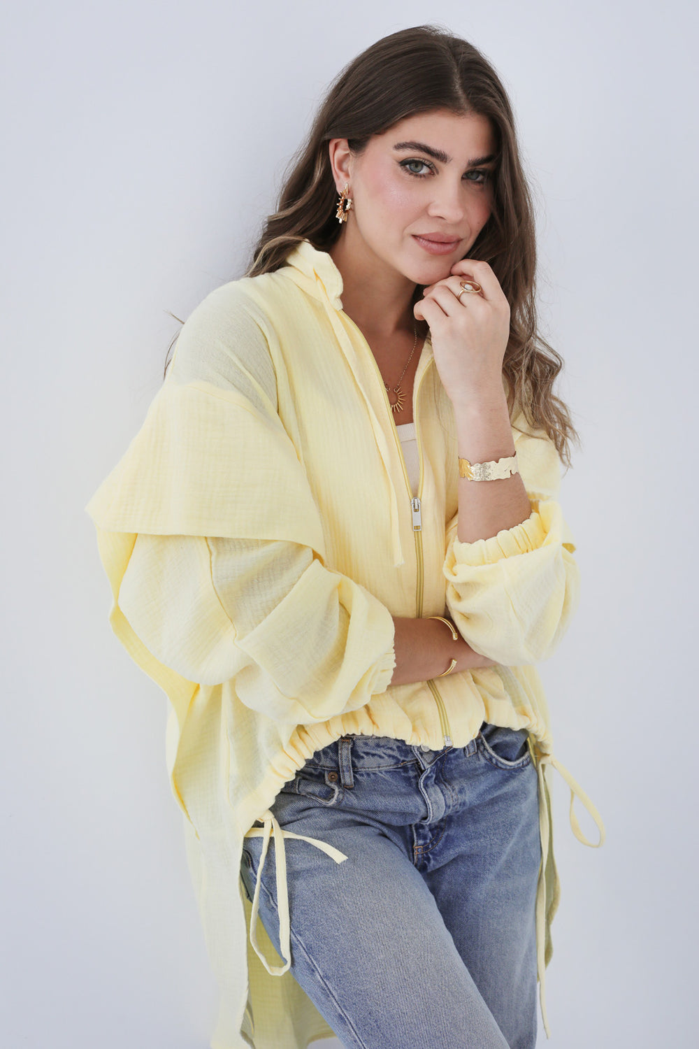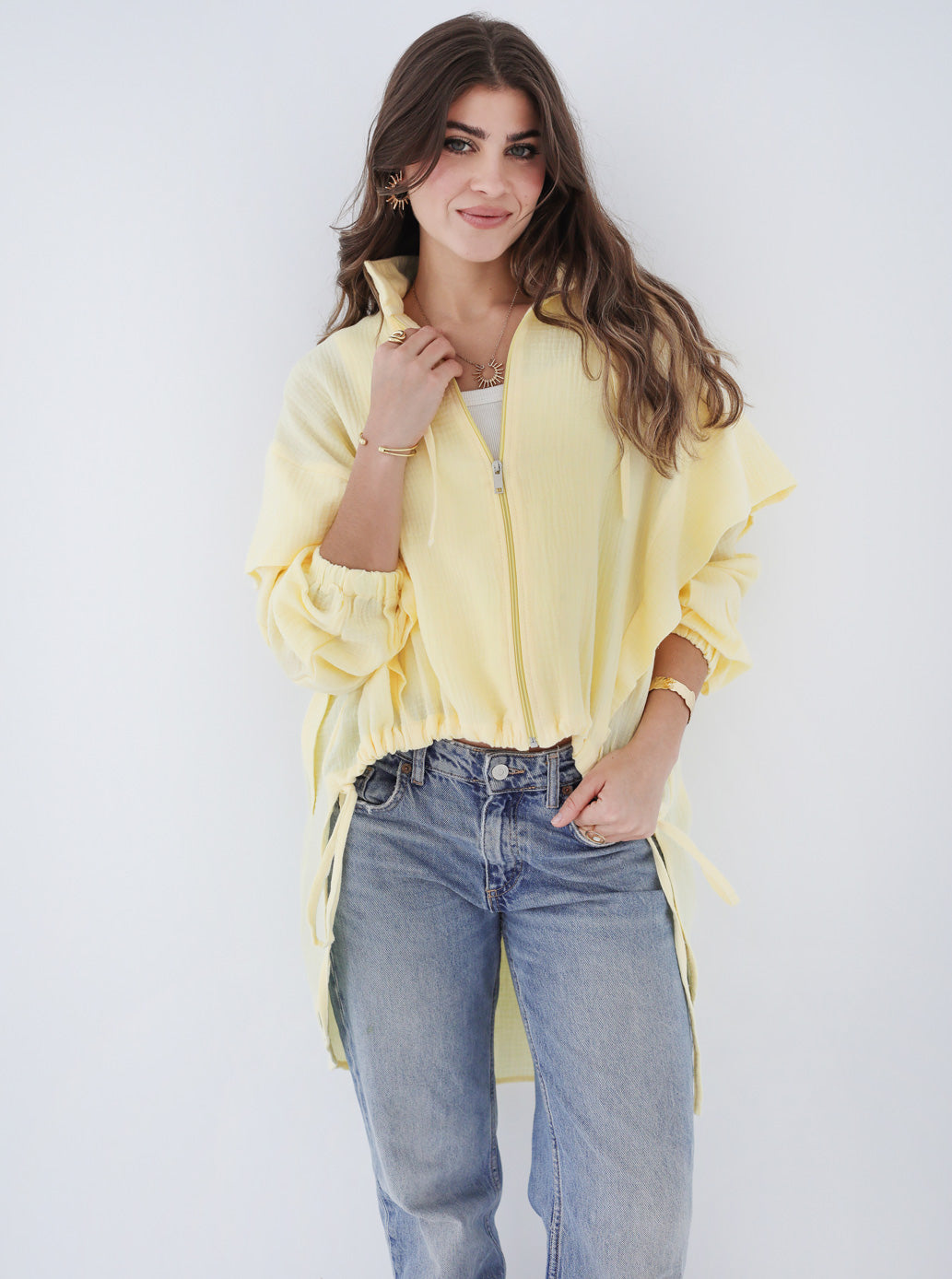 High-low Zipper Shirt Yellow