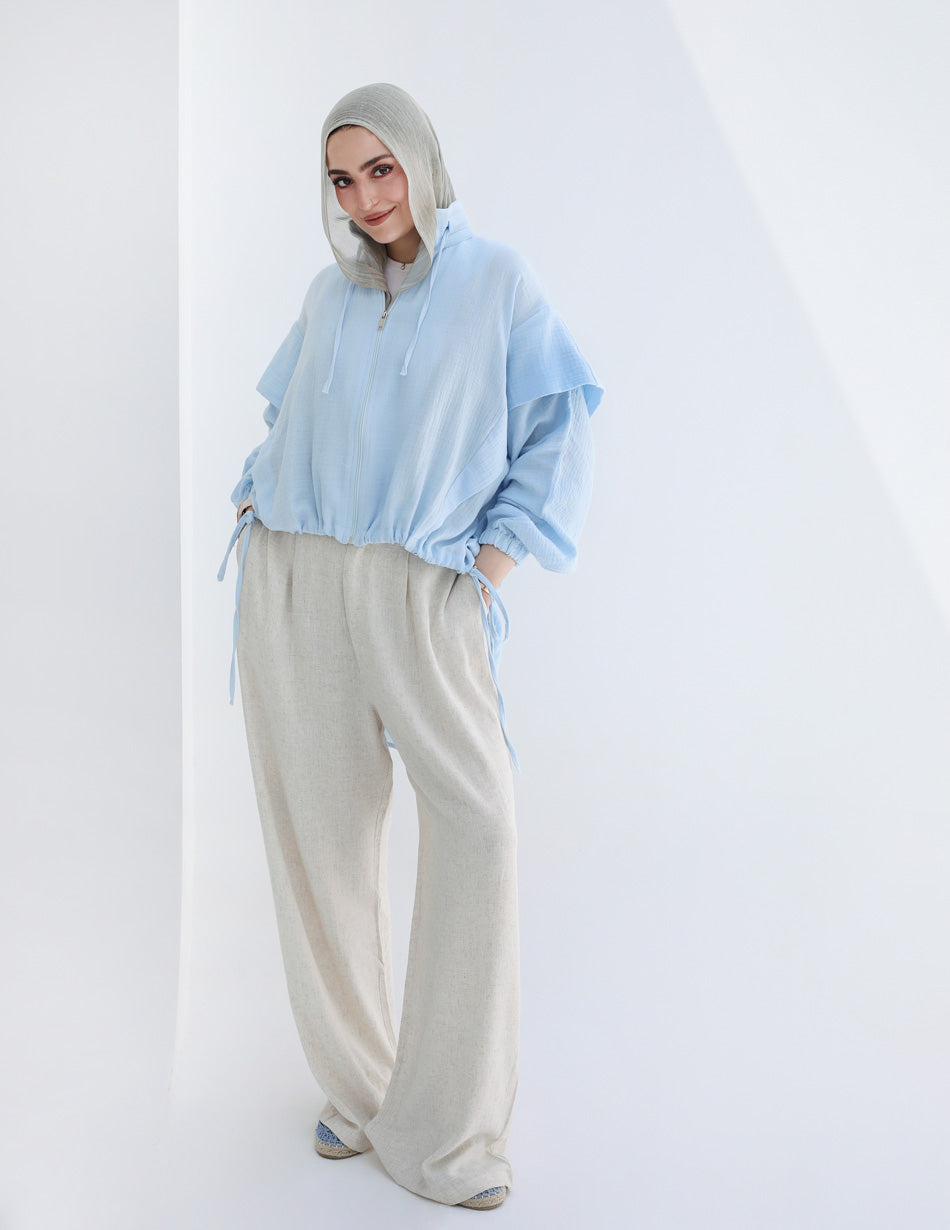 High-low Zipper Shirt - Baby Blue