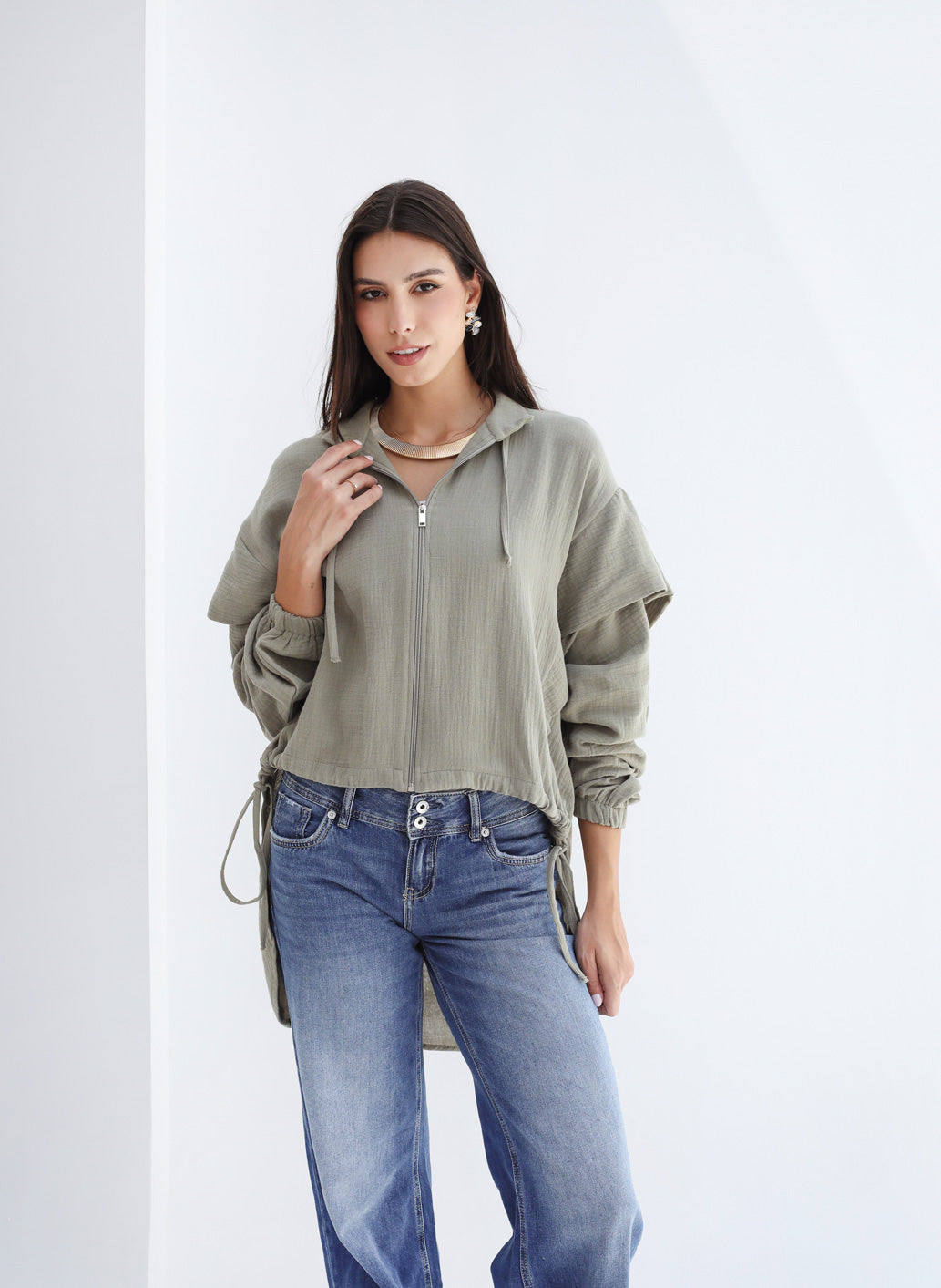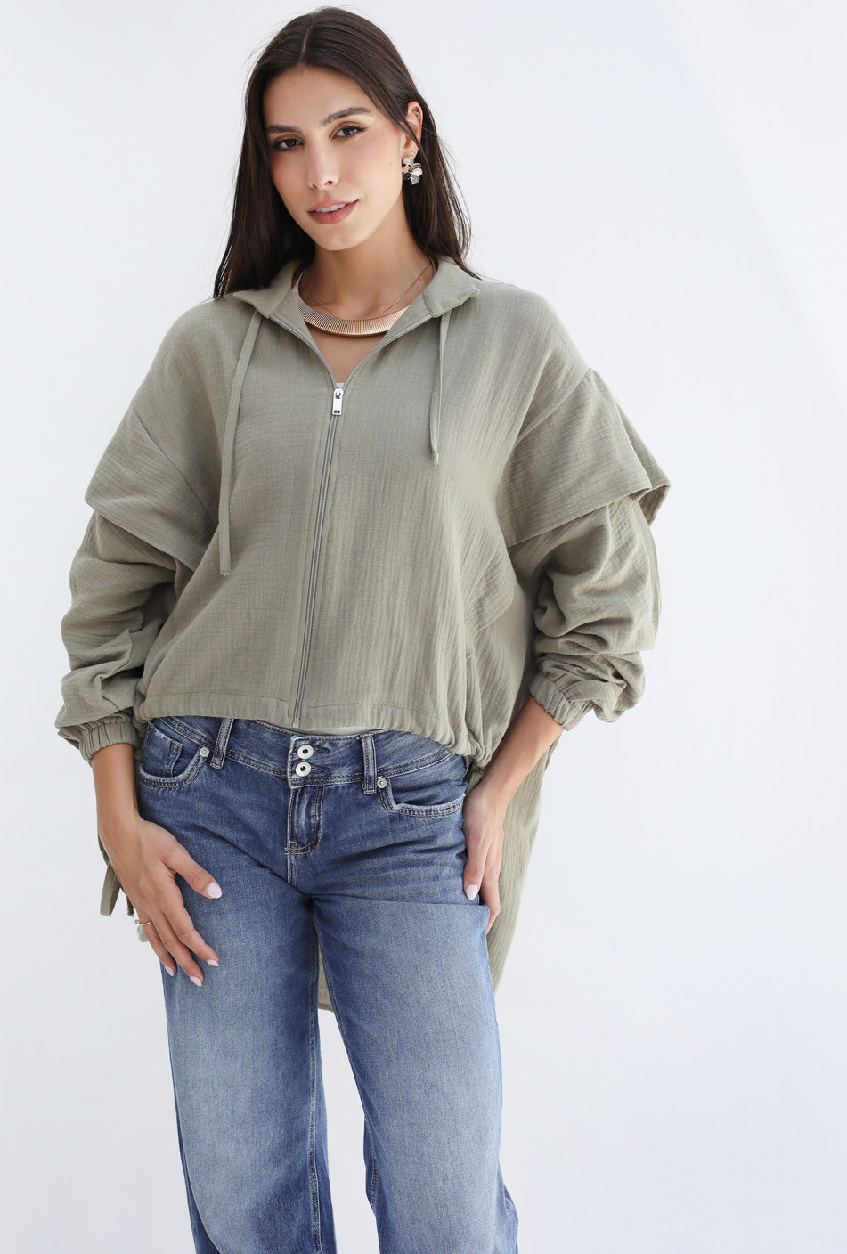 High-low Zipper Shirt - Olive