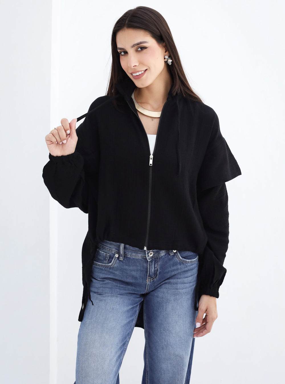 High-low Zipper Shirt - Black