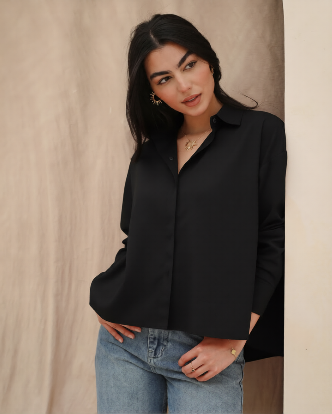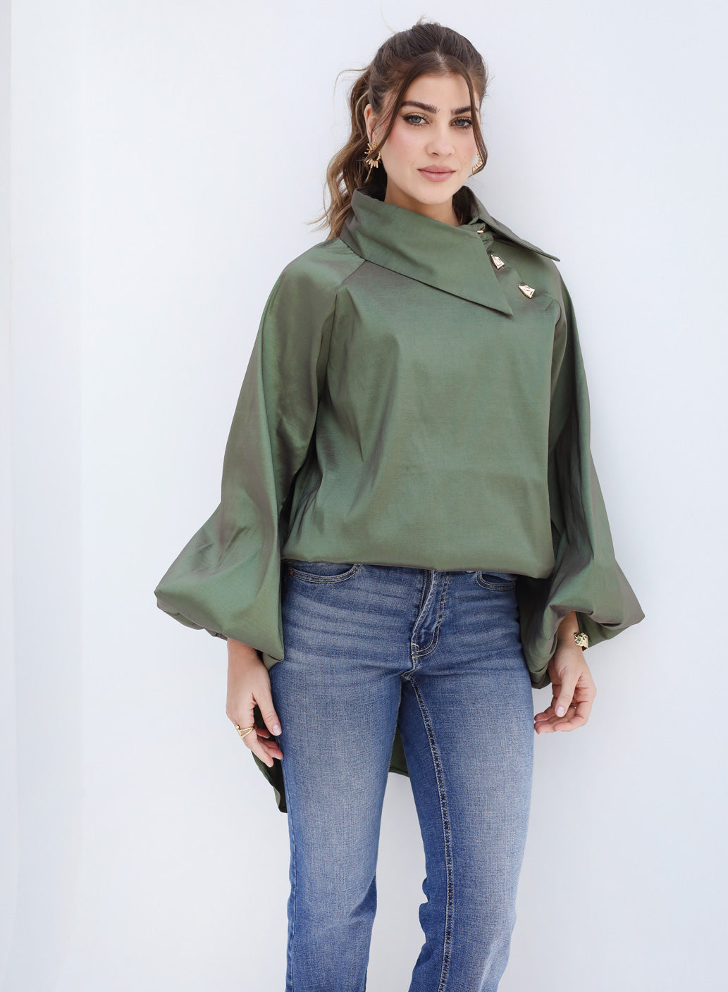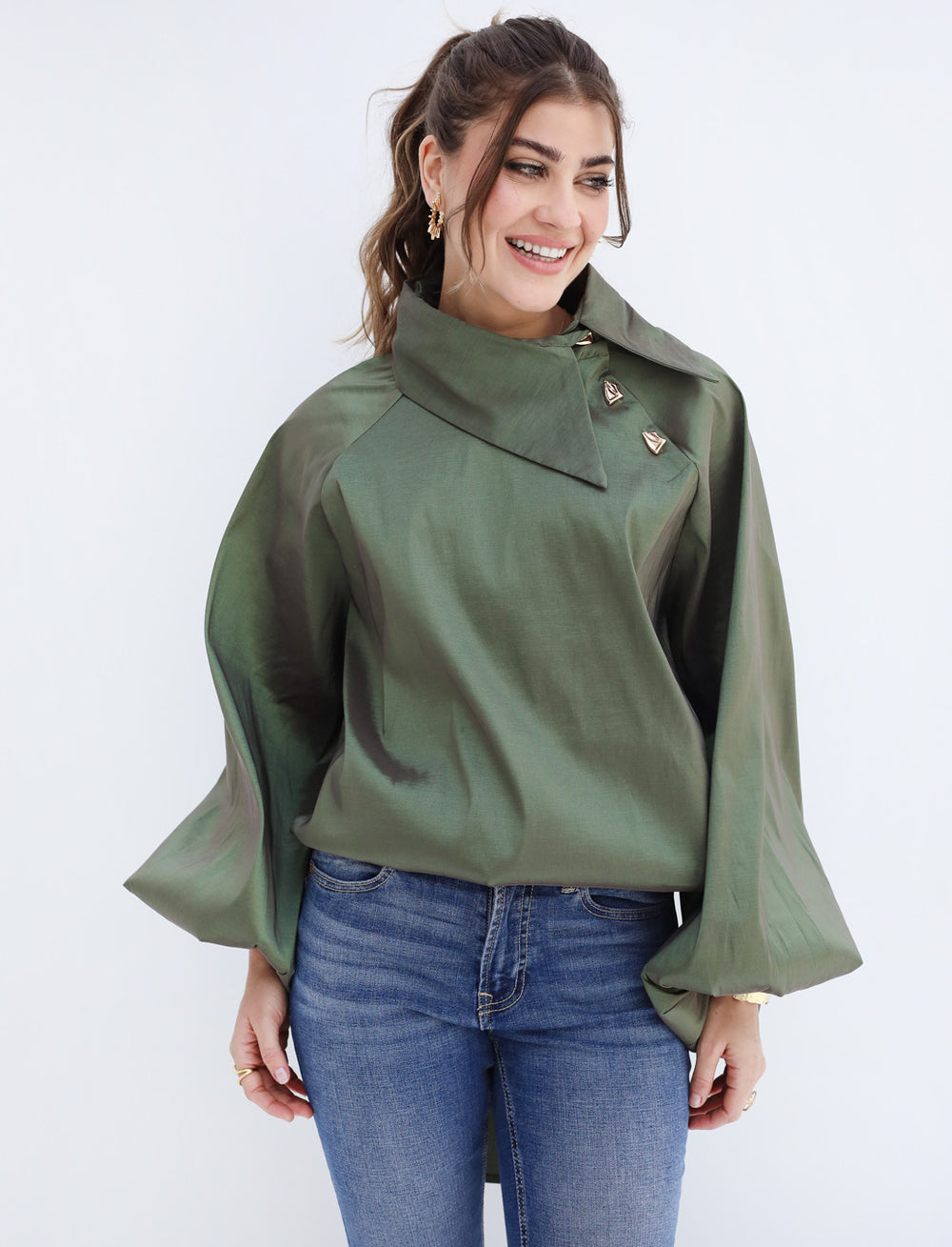 Side Collar Taffeta Top