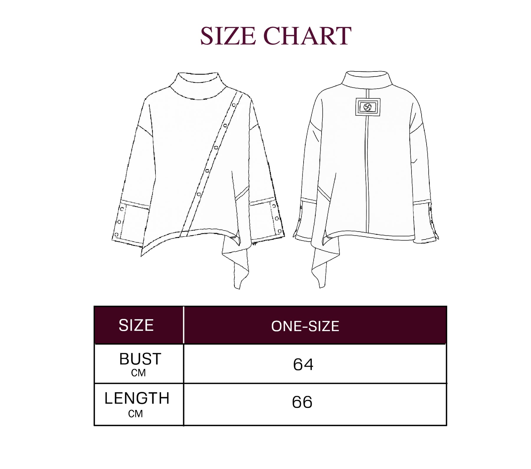 Designed with a high neckline and striking button details down the front and sleeves, it blends structure with attitude.